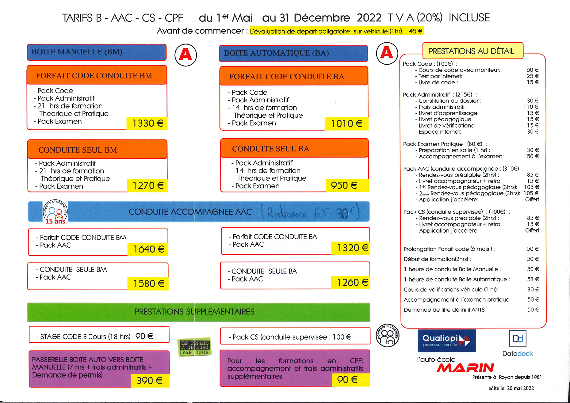 Accompagnement à l’examen pratique : | 50 € |
